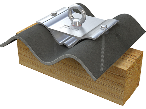 Anschlageinrichtung aus Aluminium mit Edelstahl-Ringöse Auf einem Holzsparren (min. 100 x 120 mm) verschraubt